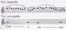 Es la forma de componer de los siglos XII y XIII en la llamada Escuela de París. Los anteriores procedimientos se van quedando antiguos: la voz principal, que solía proceder del