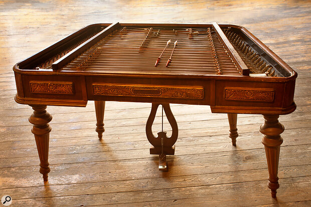 Instrumento cordófono de la música popular húngara y de otros países del Este de Europa. Se toca con dos baquetas que golpean unas cuerdas extendidas sobre una caja de resonancia. Se cree que fue traído por los gitanos desde Asia, donde se sigue tocando en Irán, con el nombre de santur. La versión antigua europea del instrumento es un salterio llamado dulcemer